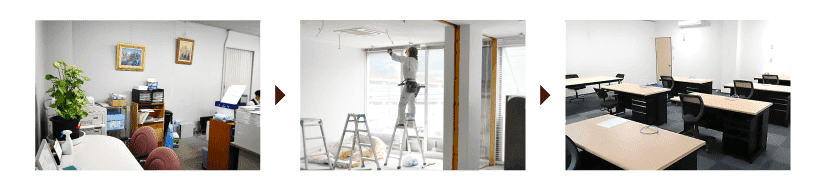 店舗として、オフィスとして、展示として…空間の用途は多種多様であり、それぞれに適した演出を心がける事が望ましいです。限られた空間で何をどのように配置するかは空間づくりのキーとなってきます。私たちはそのお手伝いをいたします。場合によっては壁を取り壊し2部屋を1部屋にするなどの大規模な内装工事もいたします。